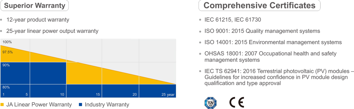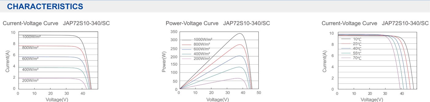 | STC | Irradiance 1000W/m2, cell temperature 25°CJ AM1.5G | ||||