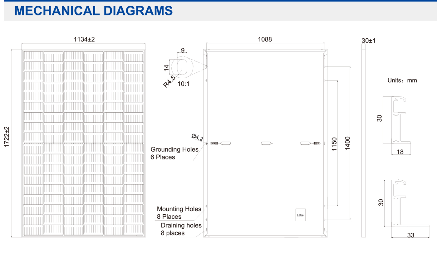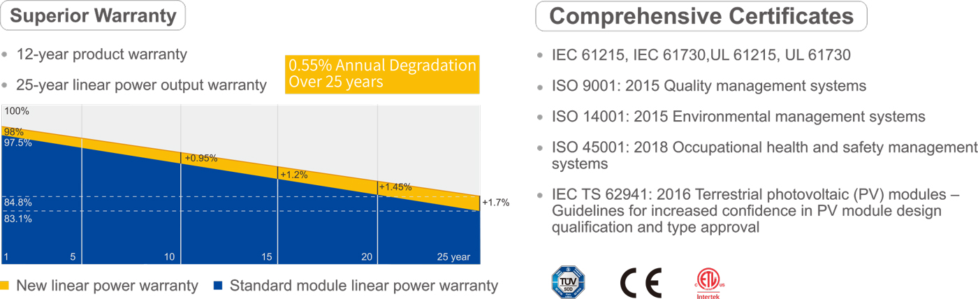 | STC | Irradiance 1000W/m2, cell temperature 25°C, AM1.5G | |||||