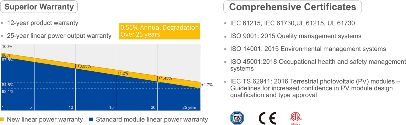 | NOCT | Irradiance 800W/m2, ambient temperature 20°C,wind speed 1m/s, AM1.5G | Fire Performance | UL Type 1 | ||||
