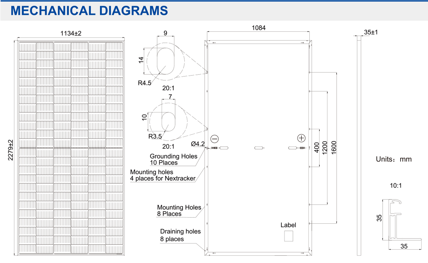 | NOCT | Irradiance 800W/m2, ambient temperature 20°C,wind speed 1m/s, AM1.5G | Fire Performance | UL Type 1 | |||||