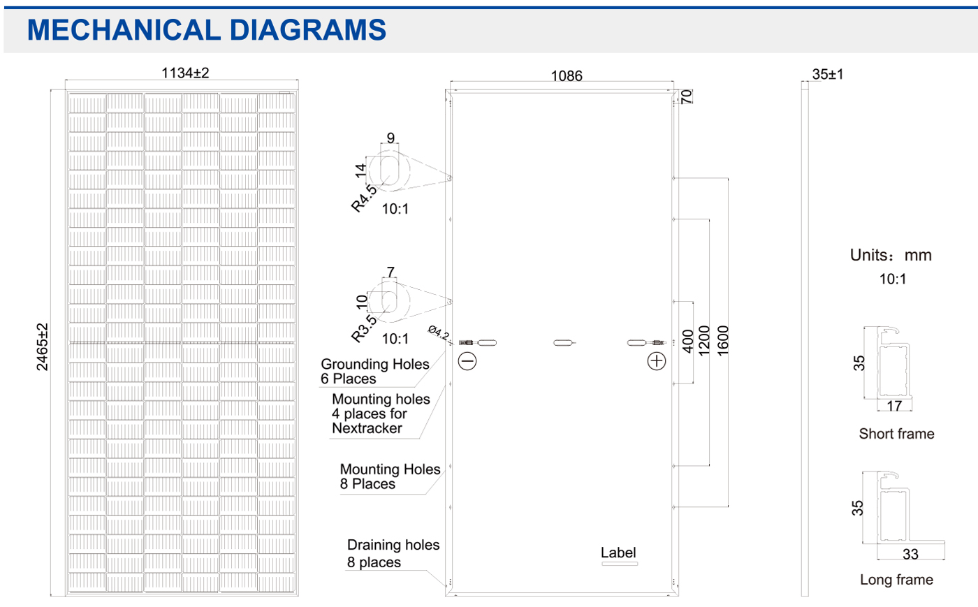 | NOCT | Irradiance 800W/m2, ambient temperature 20°C,wind speed 1m/s, AM1.5G | Fire Performance | UL Type 1 | |||||