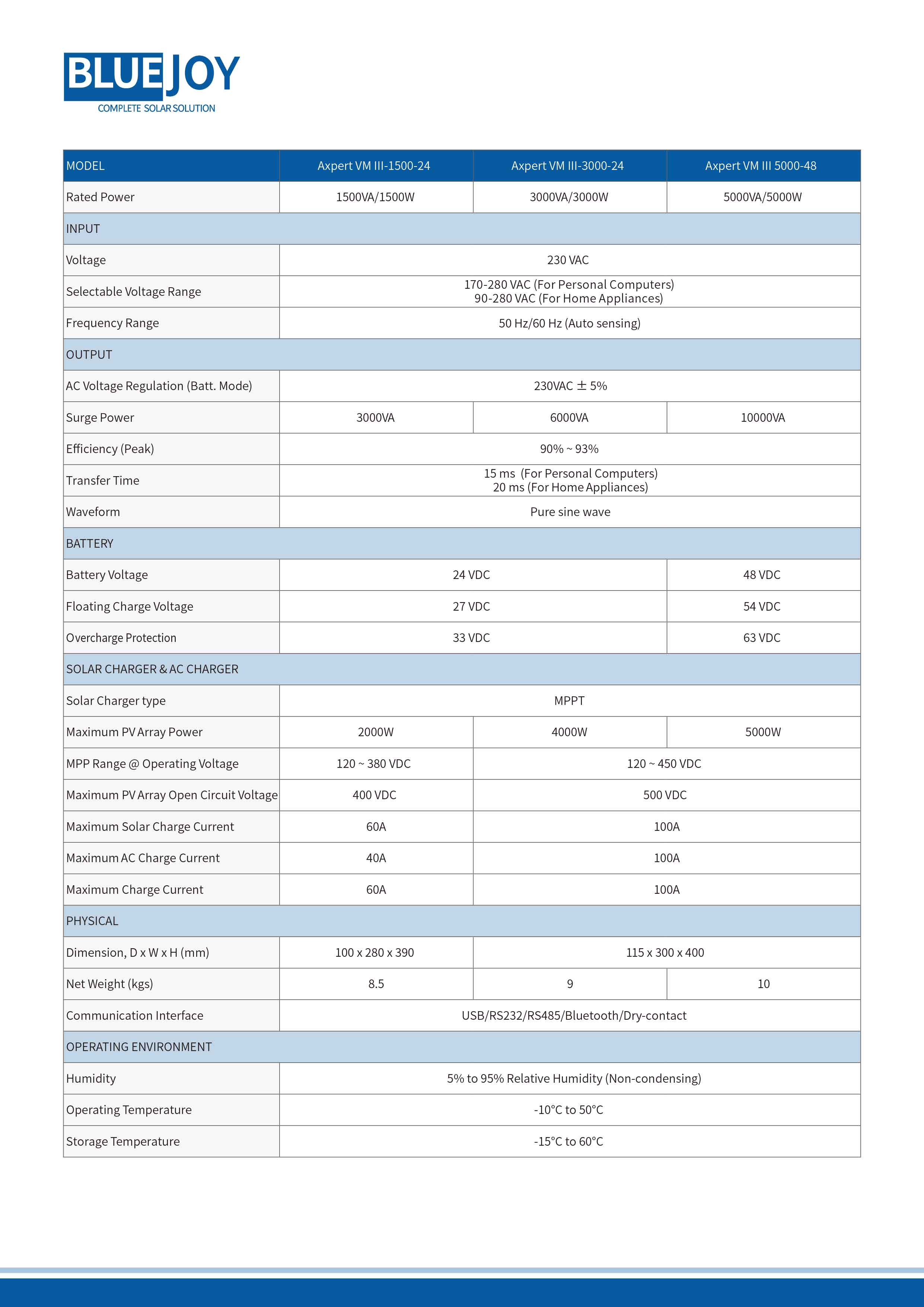 • Reserved communication port (RS-485, CAN-BUS or RS-232) for BMS