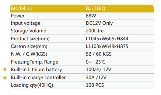 BJ-218Q DC 12Volt All-in-one SOLAR FREEZER