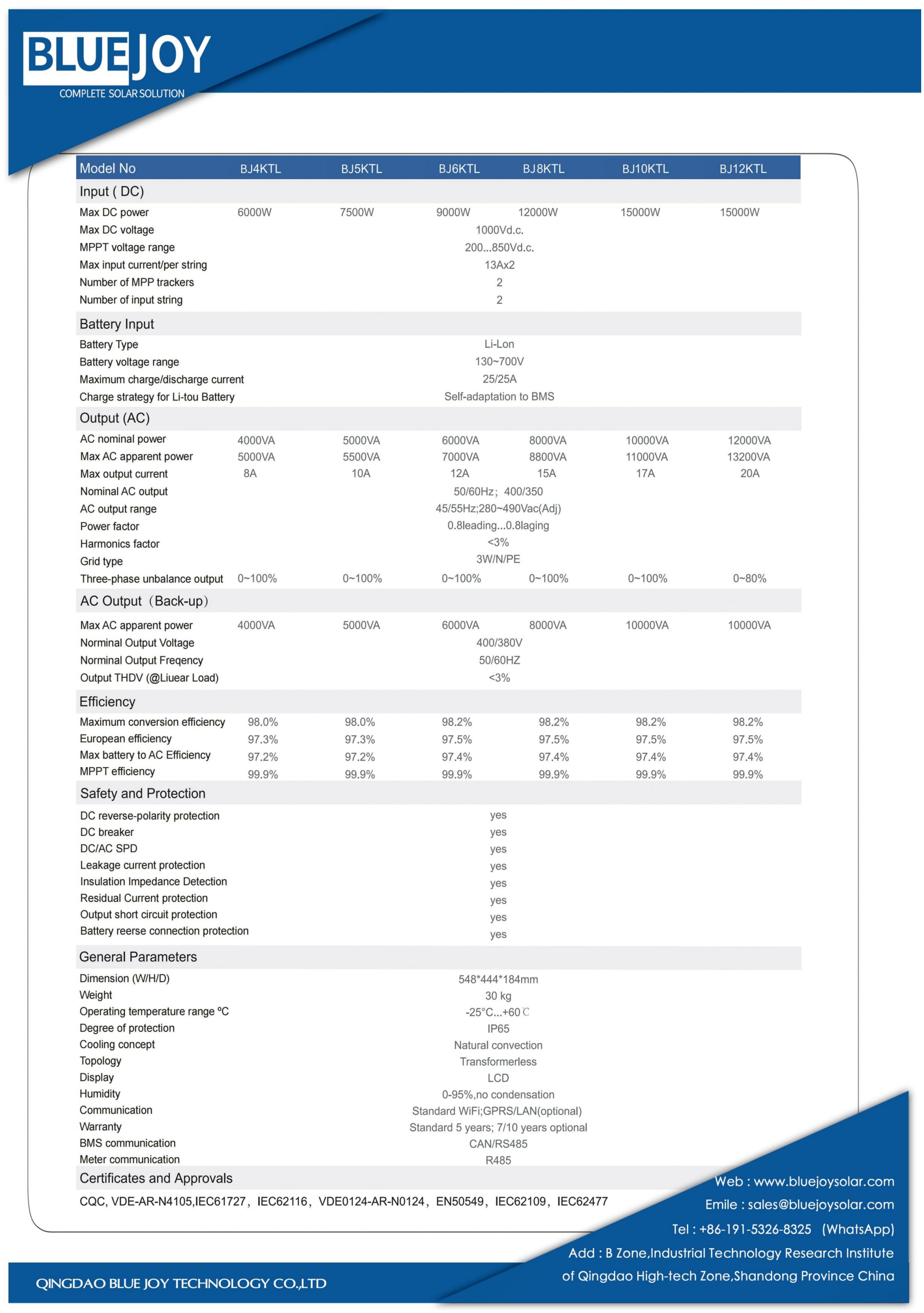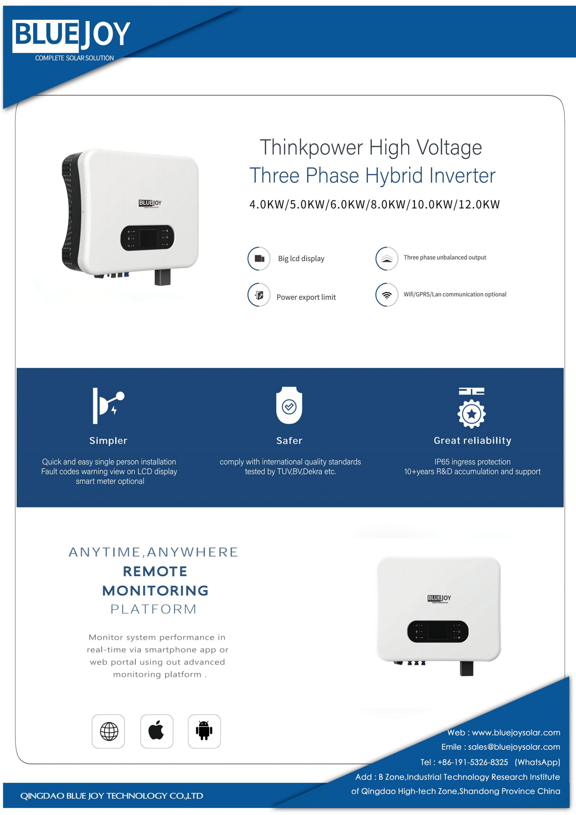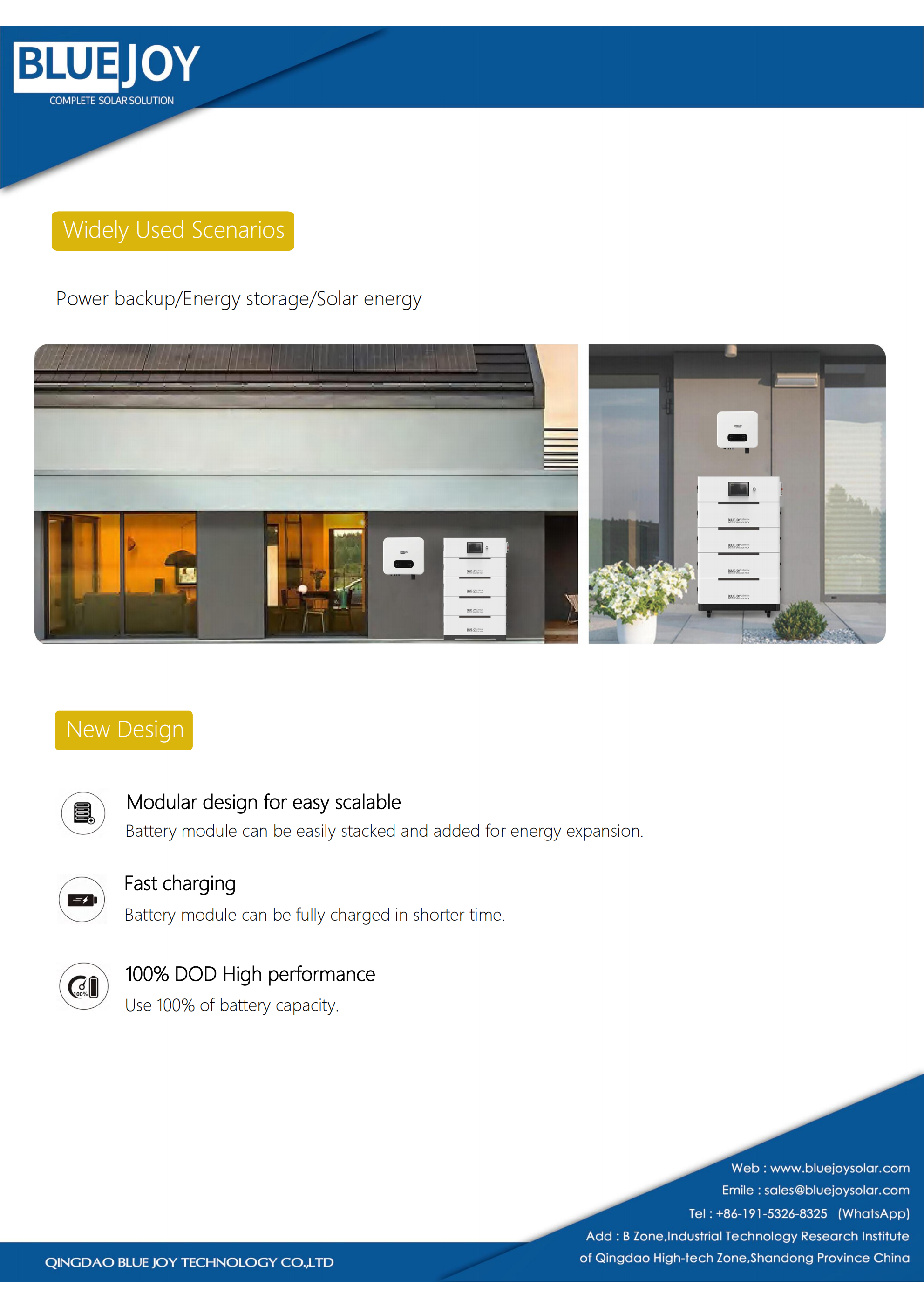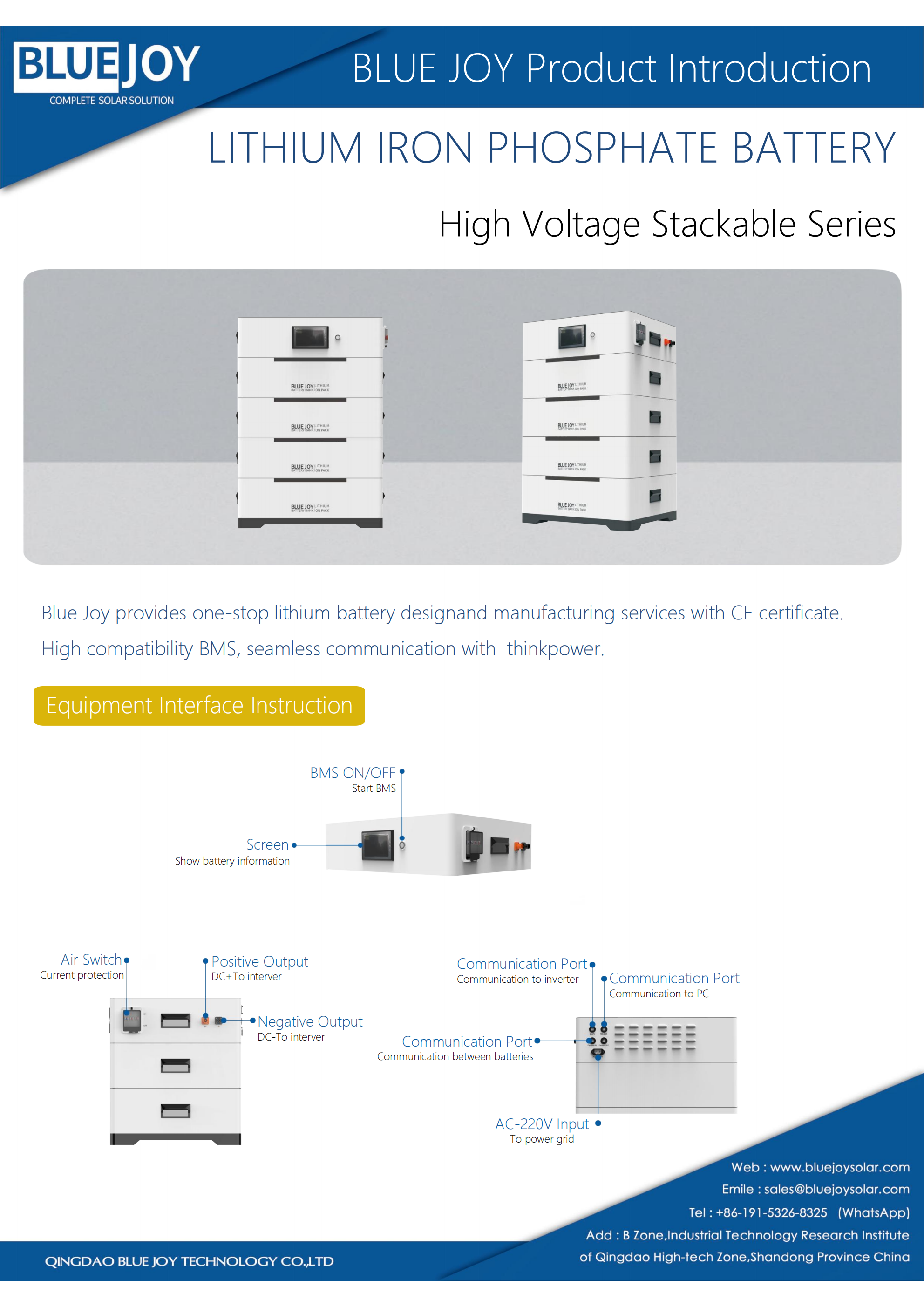 LITHIUM IRON PHOSPHATE BATTERY (High Voltage Stackable Series) (10KW-30KW) Blue Joy provides one-stop lithium battery design and manufacturing services with CE certificate. High compatibility BMS, seamless communication with energy storage inverter