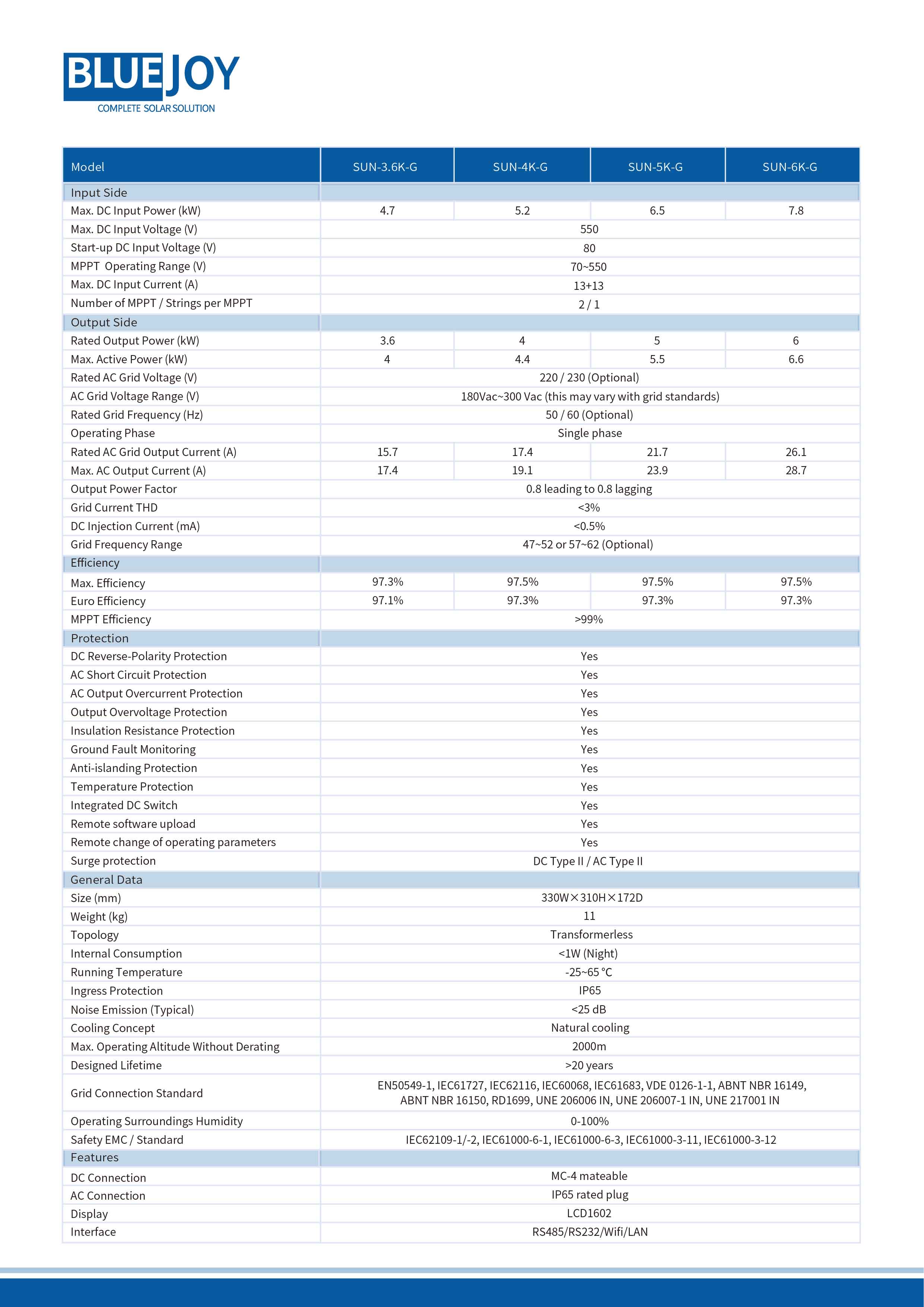 China Inverter Solar Manufacturers – Deye Single Phase String lnverter SUN-3.6 4 5 6 K-G – Blue Joy Detail: