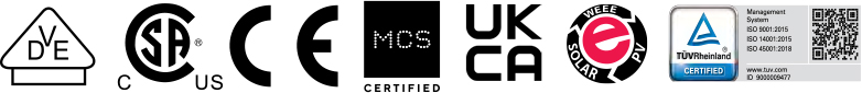 * The specific certificates applicable to different module types and markets will vary, and therefore not all of the certifications listed herein will simultaneously apply to the products you order or use. Please contact your local Canadian Solar sales representative  to confirm the specific certificates available for your product and applicable in the regions in which the products will be used.