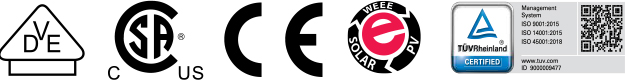 | Max. System Voltage | 1000V (IEC/UL) or 1500V (IEC/UL) |
