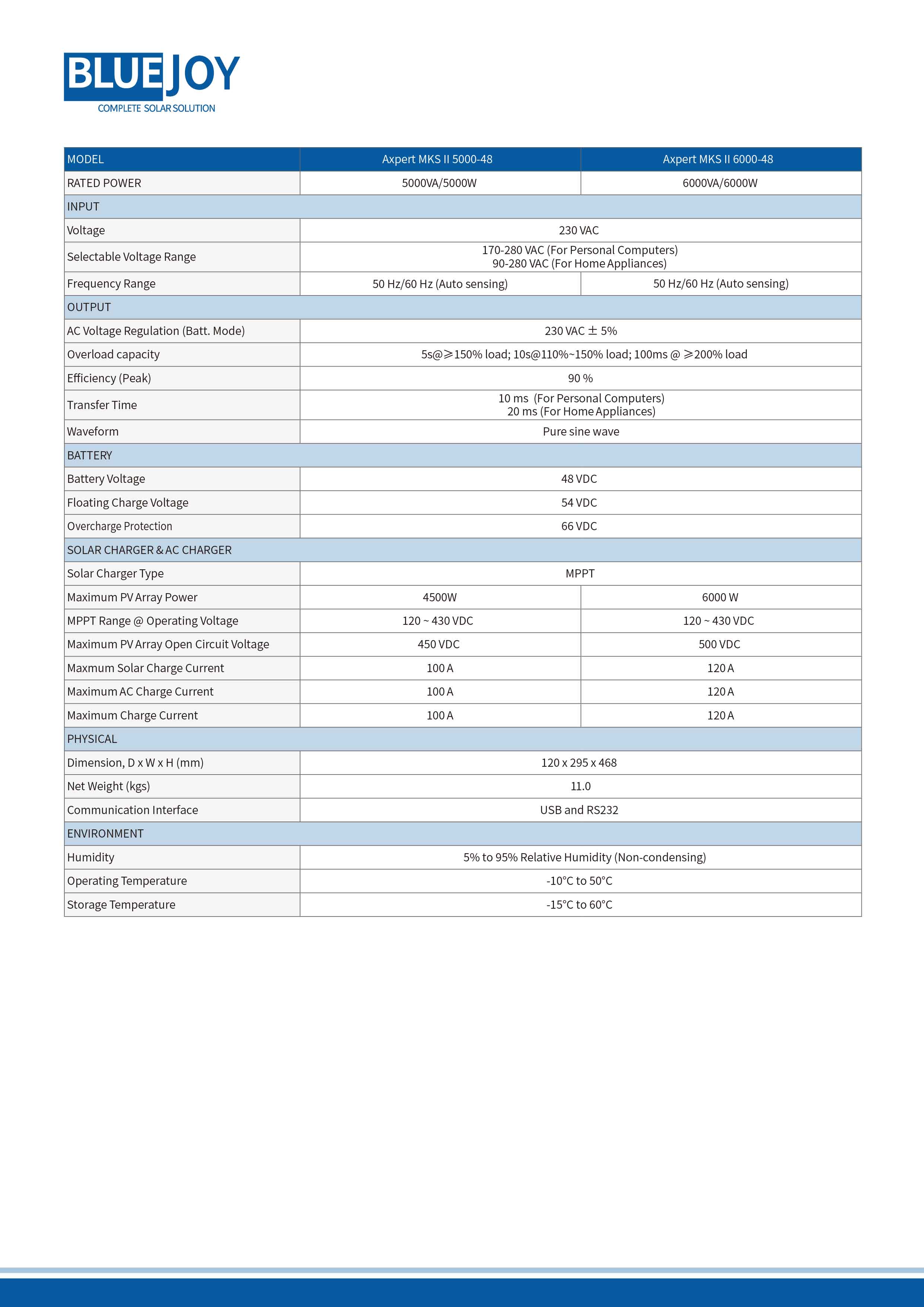 Configurable AC/Solar input priority via LCD setting Compatible to mains voltage or generator power